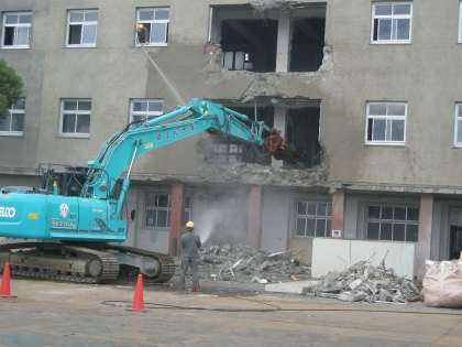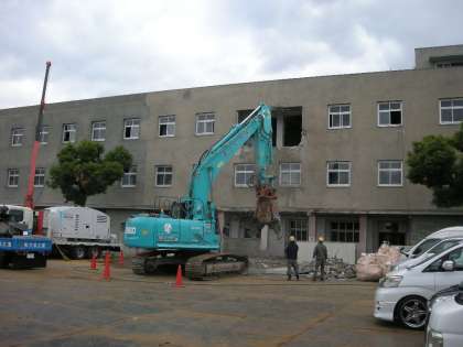 旧東校舎の躯体解体工事が本格的に始まりました。