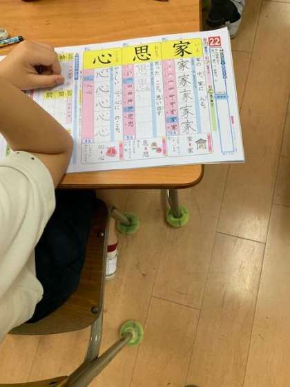 2年生の教室では、「家」「思」「心」の3つの漢字を習っていました。