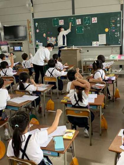 見本で書いた先生の文字を見て、ある子どもは「先生、字が上手やん。」と一言つぶやきました。