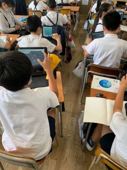 6年生のある教室では、タブレットで調べたいことをまとめていきます。地図を出したり、画像を出したり思い思いの検索をして調べ学習を進めていきます。
