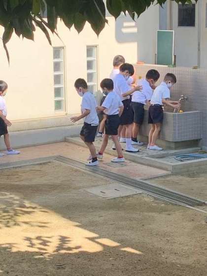 一年生と二年生は、手洗いと水やりです。(他の学年も手洗いは必須です。)