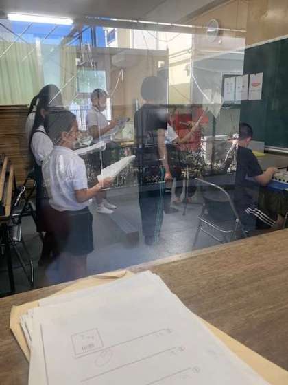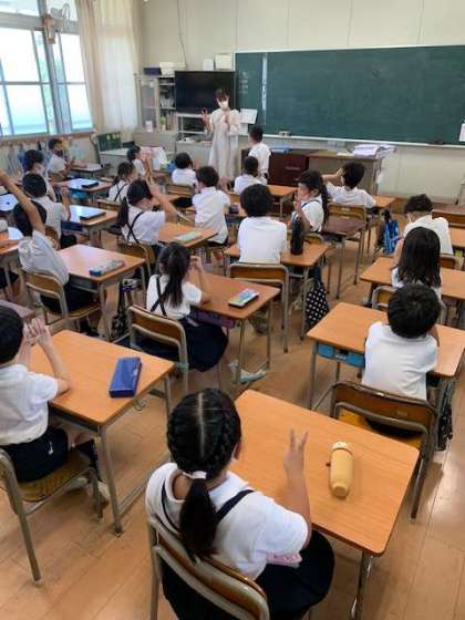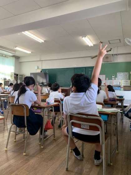 教室で出された問題について、解答を一人一人手で意思表示をします。