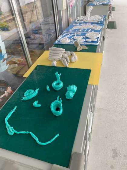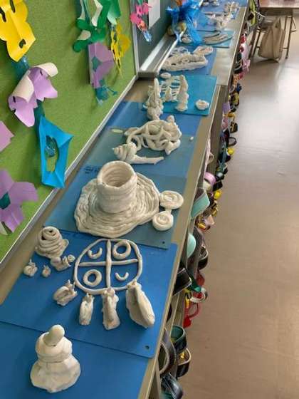 子どもたちのいろいろな思いがたくさん詰まった作品たちが並びます。