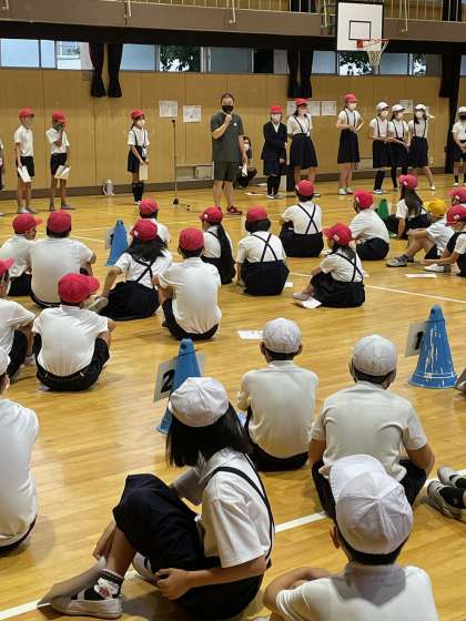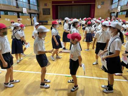 朝から強い雨が降っていましたが、3年生と5年生は講堂でペア学年集会があり、楽しい時間を過ごして一日が始まりました。
