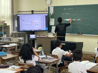 「1mのものさしを2本使って、教室の入り口の高さを測ったら20cm重なりました。」と言う問題を「重なりに注目して」図を使って考えました。
