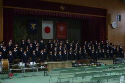 本日は新6年生の児童が式場の準備を行いました。また、新2年生の児童は「お迎えのことば」として歌や合奏を発表するので、総仕上げの練習を行いました。(写真は練習のようすです)。昨年度の3学期から一生懸命に練習しています。
