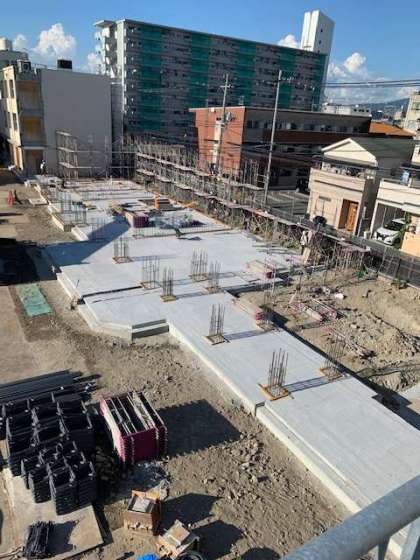 この2枚目の写真の土台上に3階建ての建物が建ち、教室や玄関フロアの他、職員室、事務室、管理作業員室ができていきます。