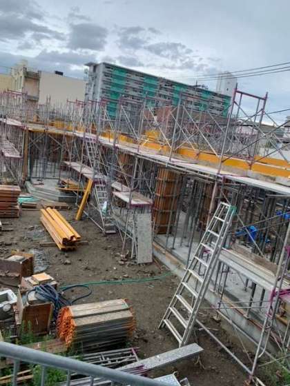 最近の雨が続いている関係で、工事のコンクリート作業が計画通りには実施できていません。が、少しずつ一つずつ「かたち」が見えてきました。