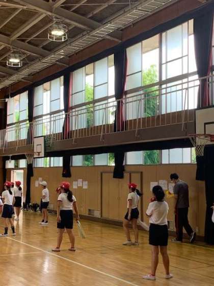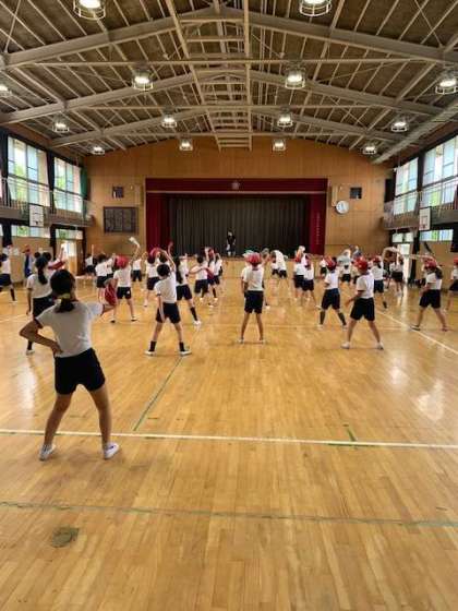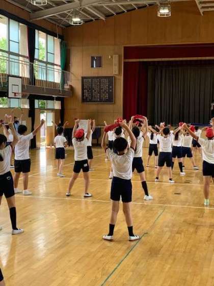 各学年で、運動会の練習がスタートしています。体育館の窓を全開にして、換気をしながら進めています。