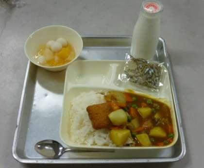 カツカレーライス  フルーツ白玉  ミニフィッシュ