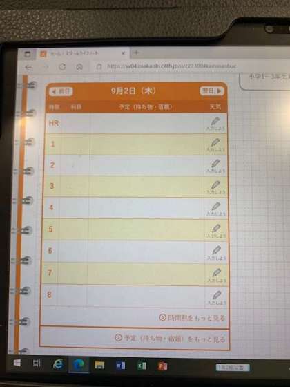 予定(持ち物・宿題)の部分に、学校からの連絡事項が反映されていきます。