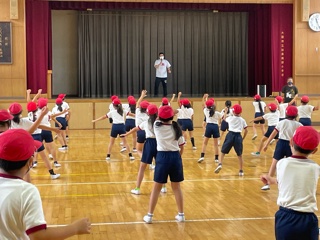 先生から「楽しく笑顔でダンスしている姿を、運動会で見てもらおうね!」と言われて、「はーい!」と元気よく答える3年生。
