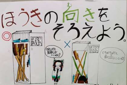 「ほうきの向きをそろえよう」と取り組んでいます。