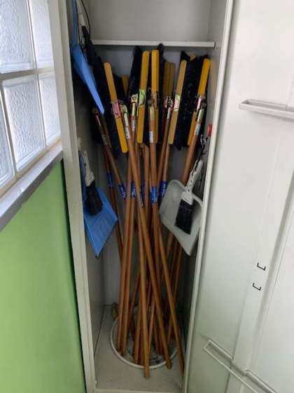 ふと廊下を歩いていて、掃除ロッカーを確認してみると、きれいに片付けられているほうきを見つけました。