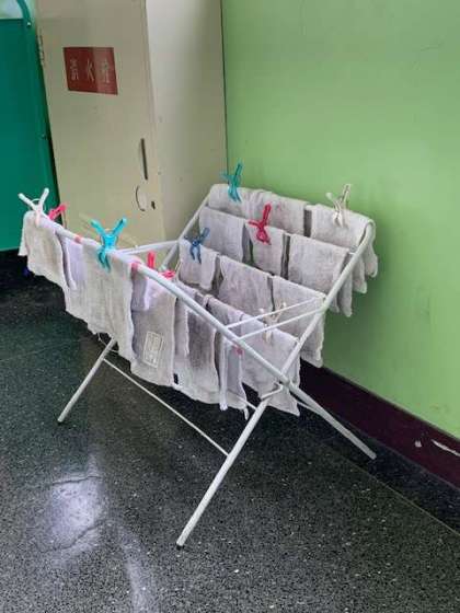 きれいに整理整頓されて、ぞうきんが置かれています。整理整頓されていると、誰が使って、誰が片付けたのかの把握がしやすくなります。