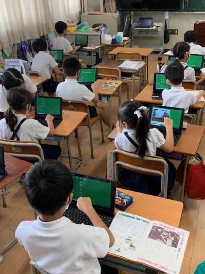 2年生もタブレットドリルが大好きです。一人一人が黙々と作業をしていきます。