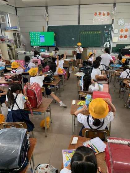 終わりの会で心を落ち着かせて、先生のお話を聴いてお家に帰ります。