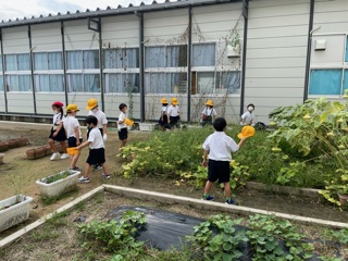 生活科の「秋みつけ」の活動で、学習園にいる生き物を探しました。