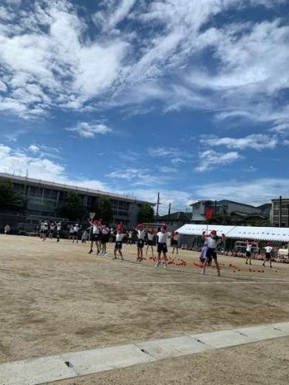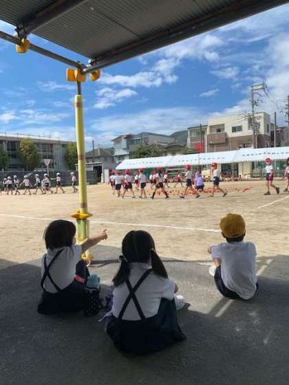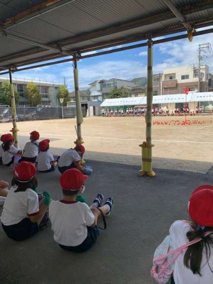 1年生と2年生は相互に、運動会演技や競技の観賞を行いました。