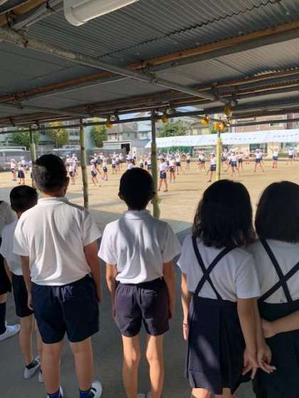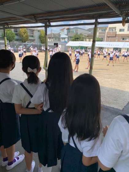 今日は3年生の演技を4年生が、見ています。