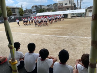 運動会前の最後の練習は、お互いの演技を観賞し合いました。