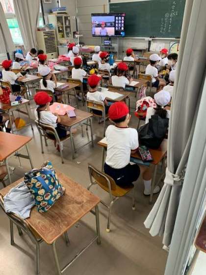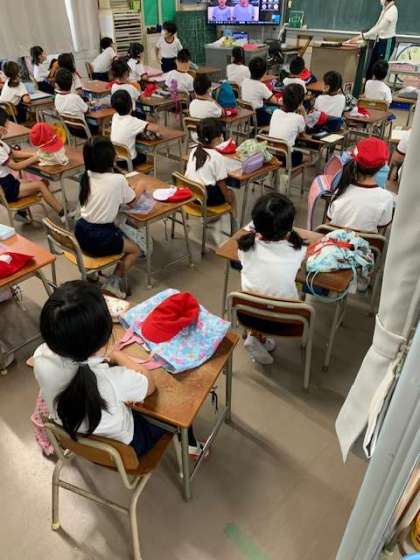 開会式を教室で「teams」を使って、各学年児童は教室で見ます。