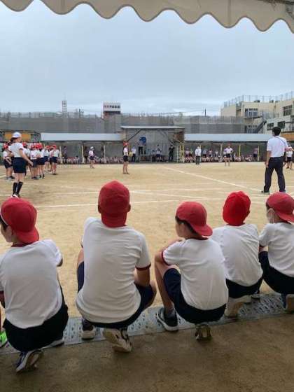 団体競技「天下分け目の加美南部〜避球合戦〜」の開戦です。5年生とまた一味違ったボールの速さが見られます。