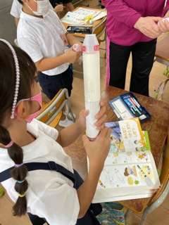 とことこ動く車、くうきで飛び出すてっぽうなどを作って楽しみました。