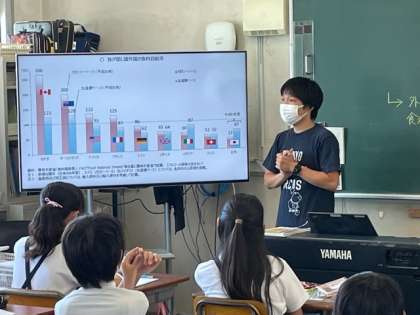 我が国と諸外国の食料自給率を表したグラフを見て、日本の食料自給率の低さに危機感を覚えた児童もいたようです。