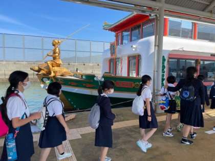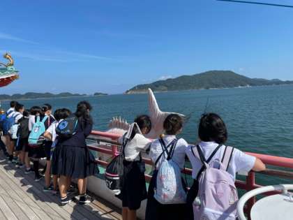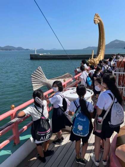 遊覧船で湾内めぐりです。