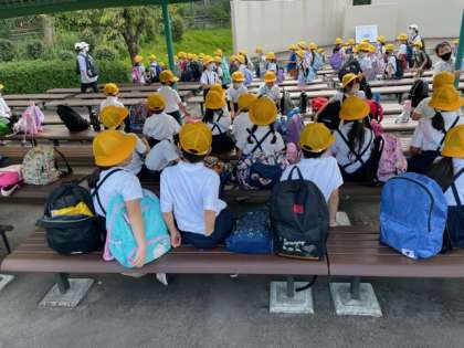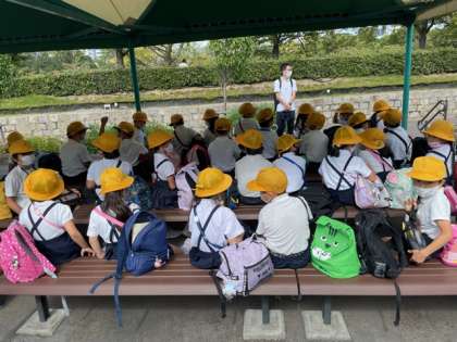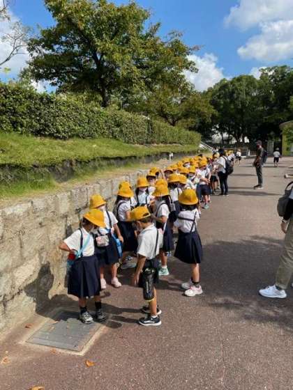 お弁当を食べる場所に荷物を置いて、水筒だけ持って見学開始です。