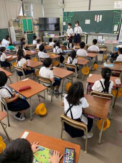 今朝は、児童会のメンバーが各教室にお店の内容決定を伝えに行きました。
