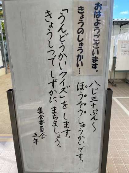 今日の児童集会は、放送による「運動会に関するクイズ」でした。