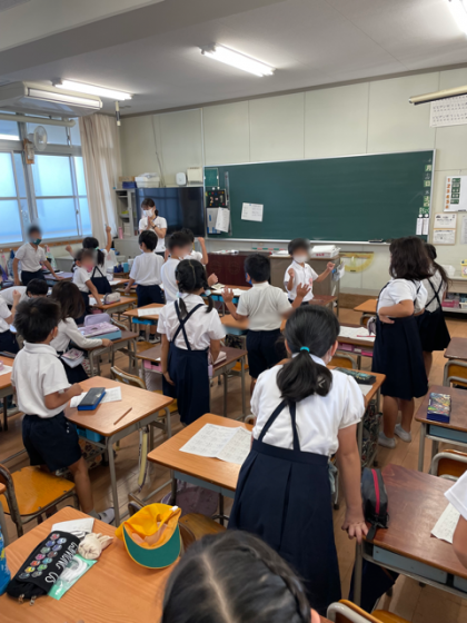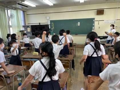 集会委員会の児童の話を聞き、楽しかった一日を思い出しながら、クイズを楽しみました。