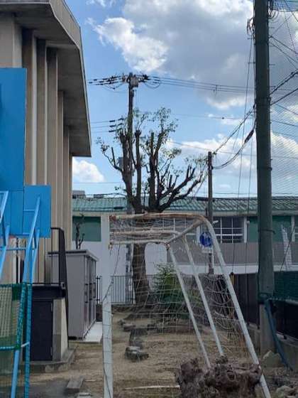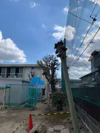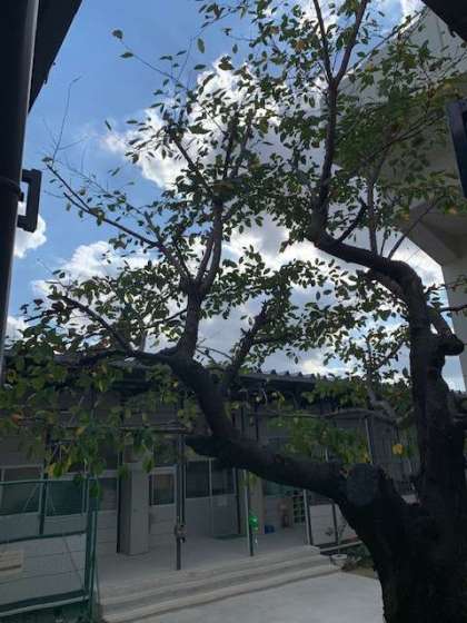 今回は、校内の木が葉をたくさんつけてきたため、きれいに剪定をしてもらいました。