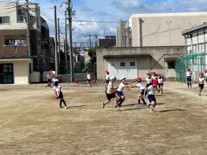 合同体育で「しっぽとり鬼ごっこ」をしました。