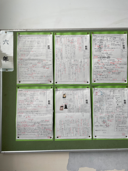 6年生の校舎階段にある掲示板に貼ってある新聞です。
