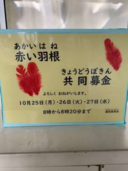 今日からの3日間(25日、26日、27日)は、赤い羽共同募金を募る活動を運営委員会の子どもたちが担ってくれています。
