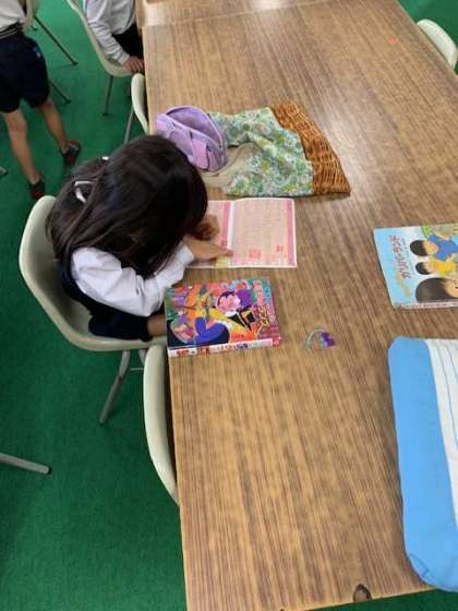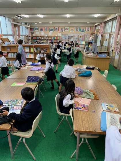 今日は火曜日です。学校図書館補助員さんも出勤されていて、図書室も大賑わいです。
