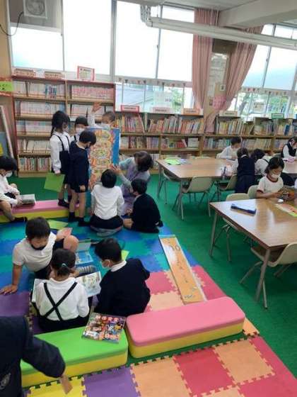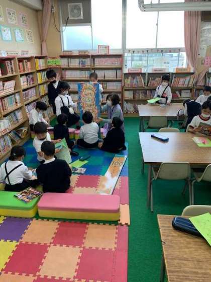子どもたちは、手洗いと消毒をしたあとに入室し、あとは本をゆっくり読む時間です。読んだ本の名前は、「ひらちゃん読書ノート」に書き込みます。