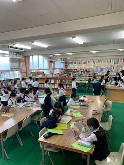 15分間の昼休みの様子です。実際は給食を返却する時間もあり、時間一杯図書室で過ごす子どもたちは多くないです。