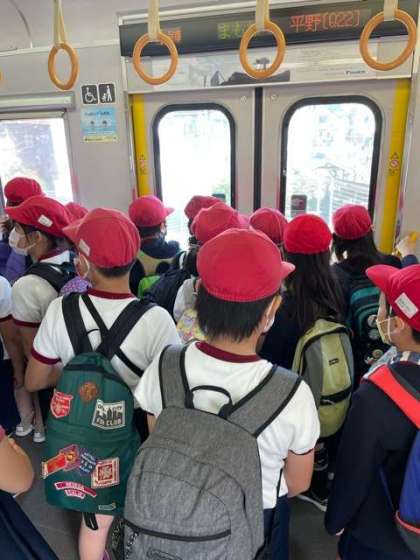 電車に乗るのもうれしそうな3年生です。