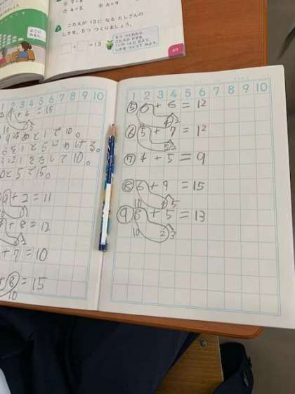 今日もさくらんぼ算のたし算の学習です。