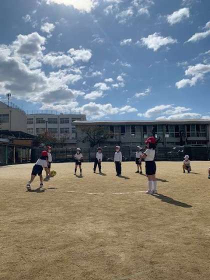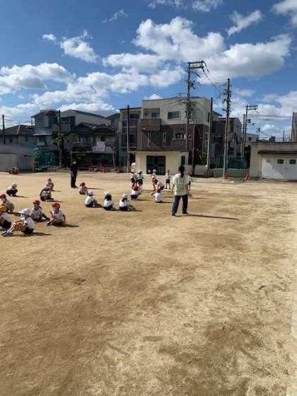 とってもいい気候の中で、ドッジボールの練習です。みんなご存知の四角いコートではなく、丸いコートで練習しています。