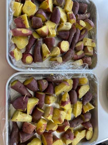 学習園で育てたおいもを家庭科室で蒸して、2年生で食べました。