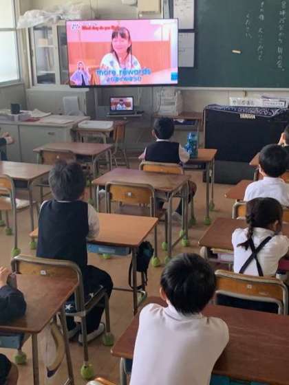 それぞれの国の人によって、好きな曜日が違うようです。理由とともに、全て英語で聞こえてきます。子どもたちは、わからない意味の言葉と推測して理解しているようです。
