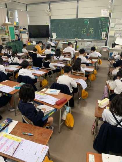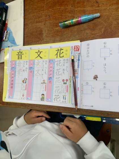1年生の習う漢字が「花」まできました。担任の先生からは、きれいな字の「花」が咲かせようと子どもたちに声をかけています。