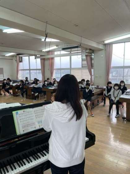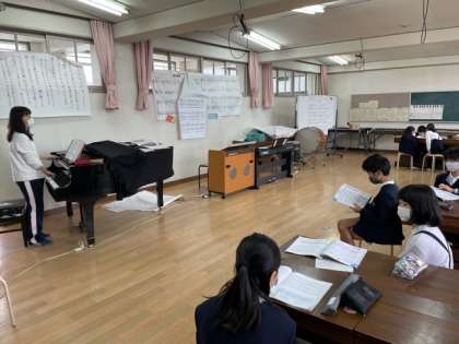 音楽室から素敵な歌声が聞こえてきました。「もみじ」を低音と高音に分かれて合唱する練習でした。綺麗な紅葉が見られる頃には、さらに素敵な合唱が聞かれることでしょう。