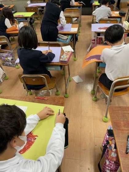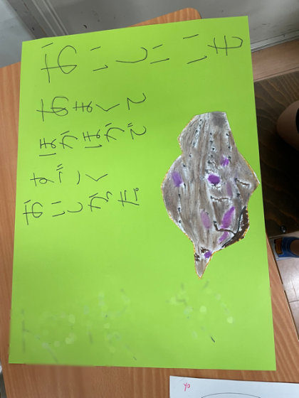 頑張って描いた「お芋」の絵を、感想を付けて台紙に貼りました。