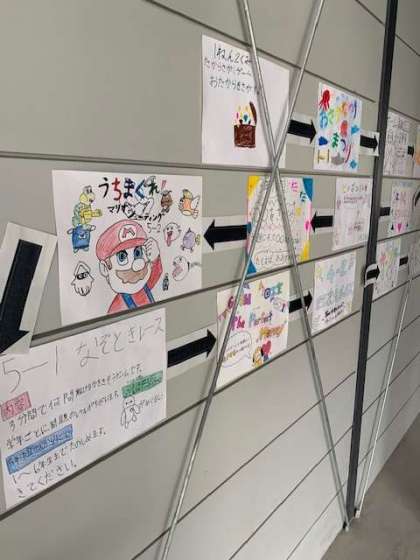 職員室前には各学級で作成したポスターが掲示されています。どの順番で回るのかが一目でわかります。